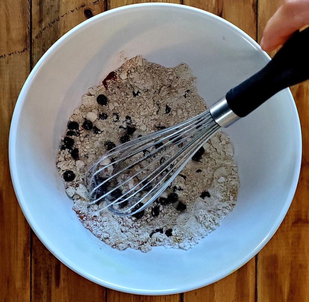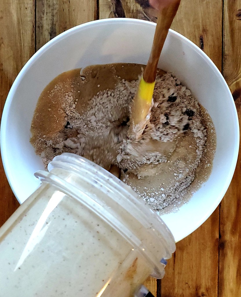 Add wet mix to the dry mix and whisk or fold until everything is fully incorporated.