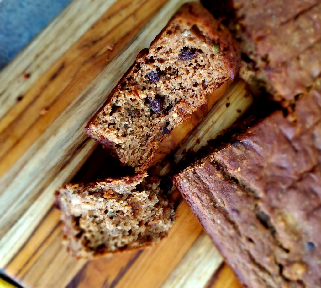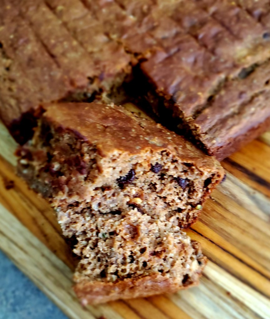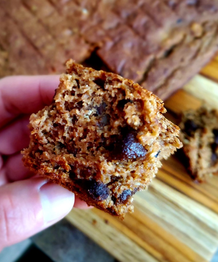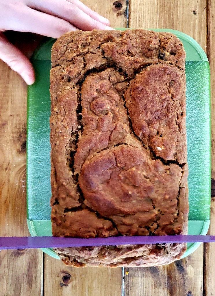 The ground flax and banana in this recipe work as a binder to hold this loaf together so nicely.