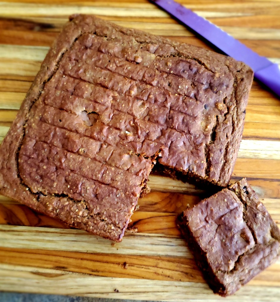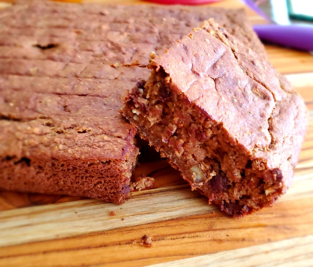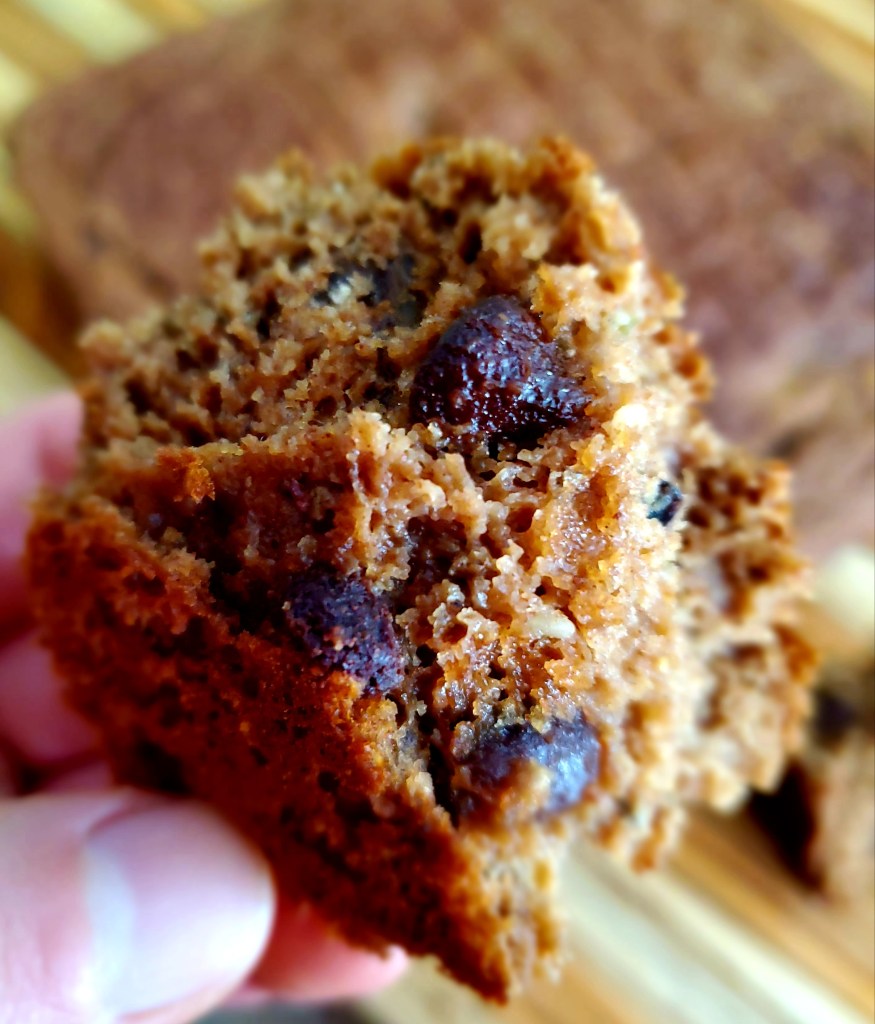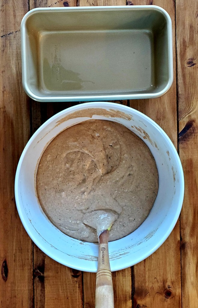 The ground flax and banana in this recipe work as a binder to hold this loaf together so nicely.