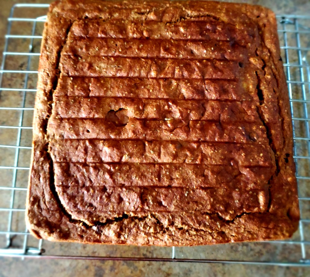Preheat oven to 350 degrees. Spray an 8 by 8 baking pan with oil or line it with parchment paper, set aside.