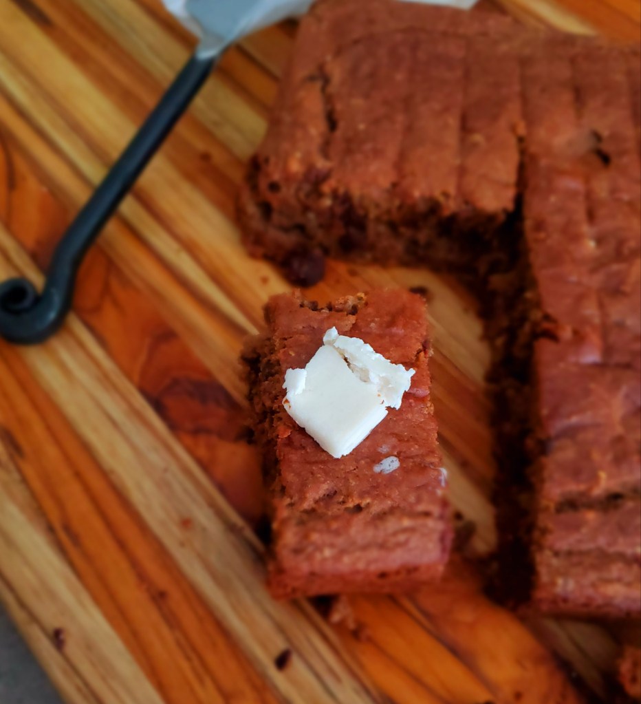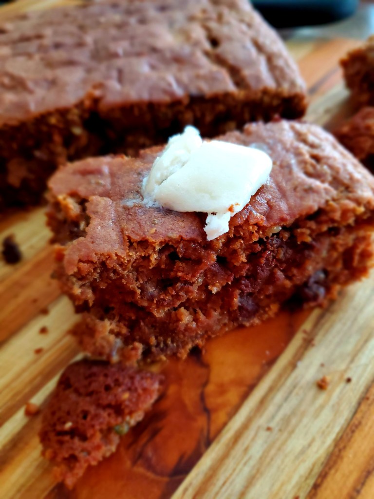 Originally, I did try to make this recipe in a loaf pan. What I noticed was that the center always ended up a bit gummy and under baked while the outside became a bit over baked. If all you have is a loaf pan, don’t fret! If you have 2 loaf pans just divide one recipe between 2 loaf pans. If you only have one loaf pan, half this recipe and bake in one loaf pan. Keep in mind that the baking time will be different, it will need less time to fully bake in a loaf pan. Keep your oven temperature at 350 degrees and start checking your loaf/loaves after 20 minutes of baking. It should take anywhere from 20-35 minutes. All the other steps in this recipe will remain the same.