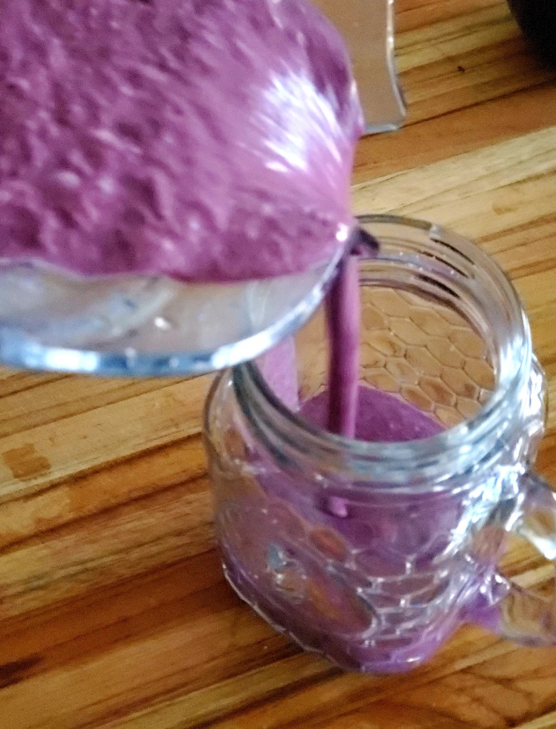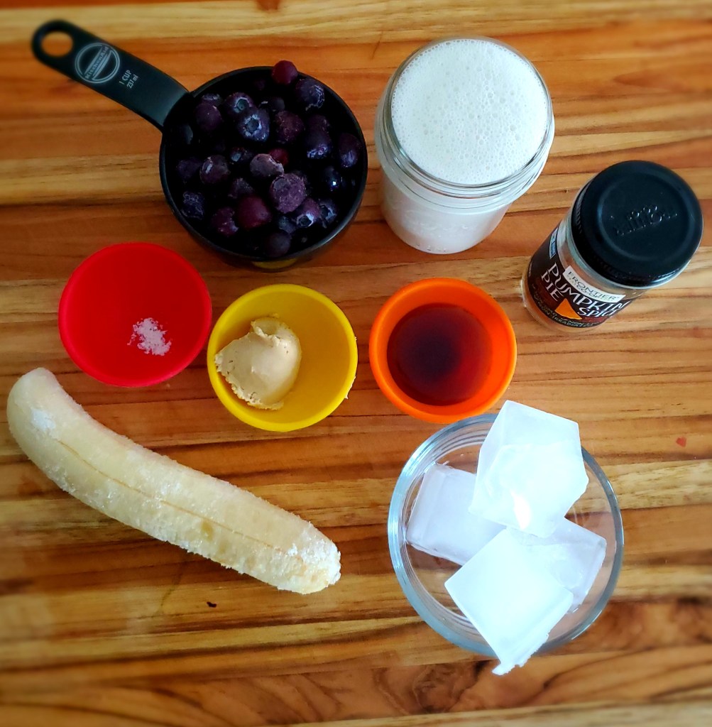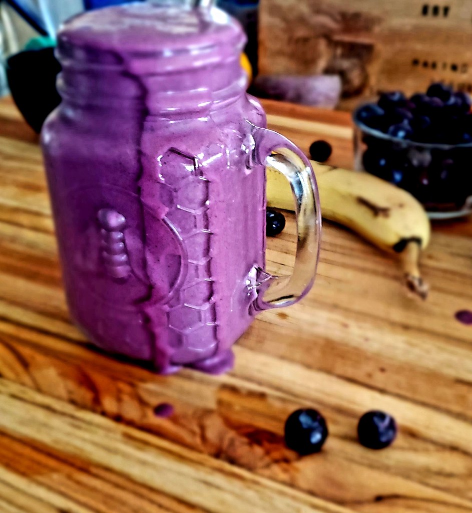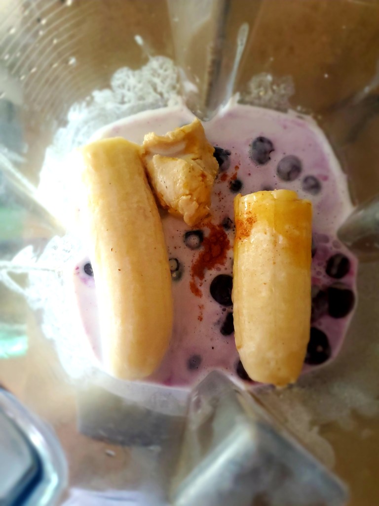 The cashew butter makes this shake extra special. Blueberries are interchangeable with whatever berry you like. I quite enjoy strawberries or peaches. For more of a milkshake consistency, this recipe works best with a frozen banana and frozen berries.