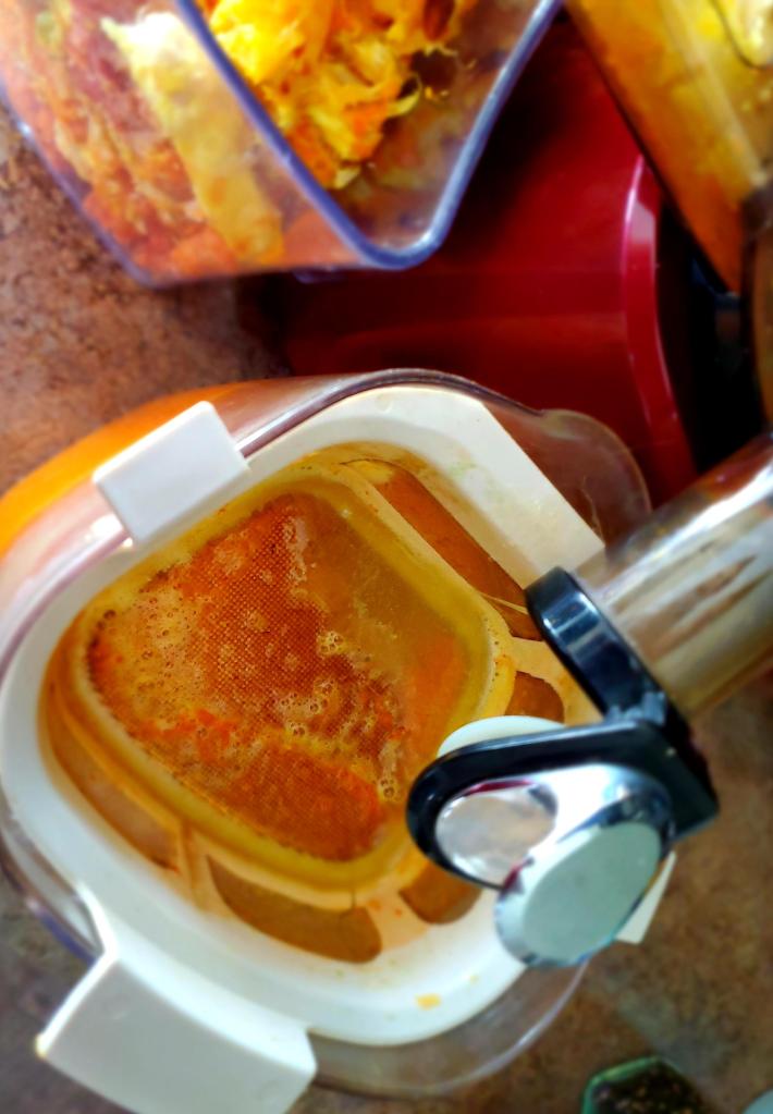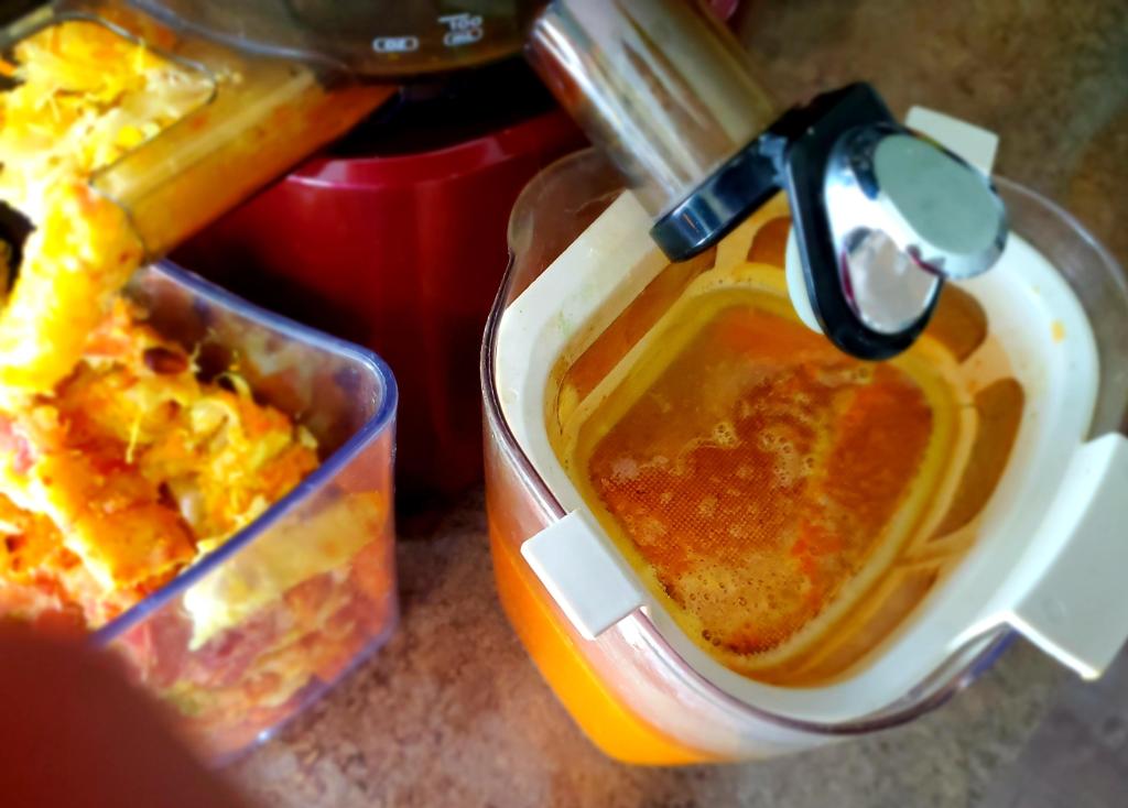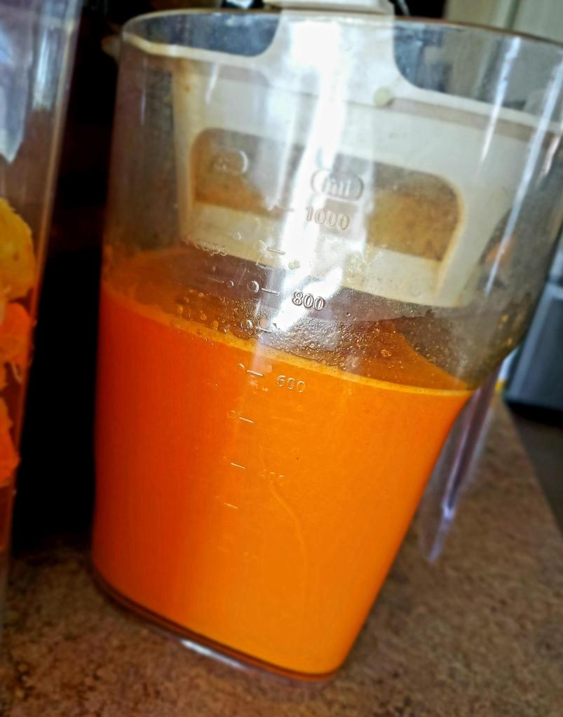 Prepare your produce as directed above. Run all of the ingredients through your juicer. Its good to alternate the more fibrous ingredients with the softer ones to keep your machine from clogging up. This is only an issue if you are using a slow masticating juicer. If your using a centrifugal juicer everything should run through smoothly without clogs.