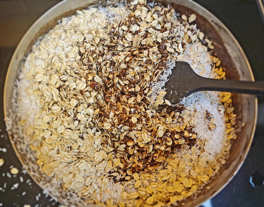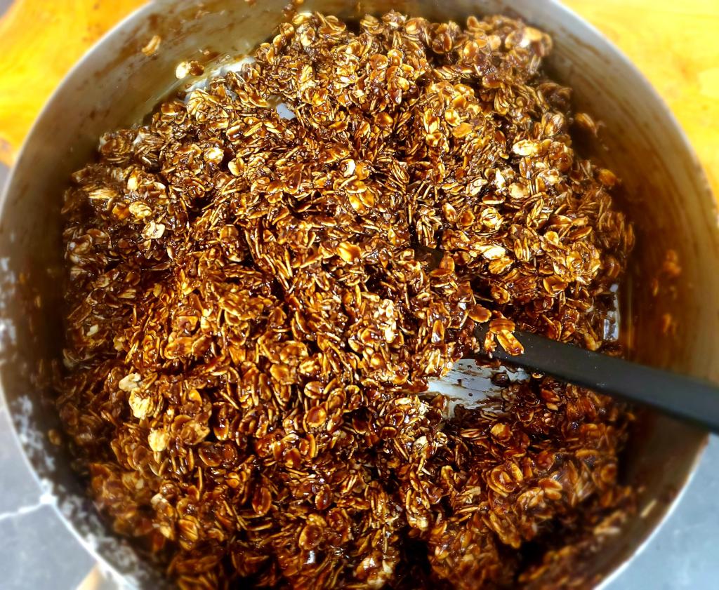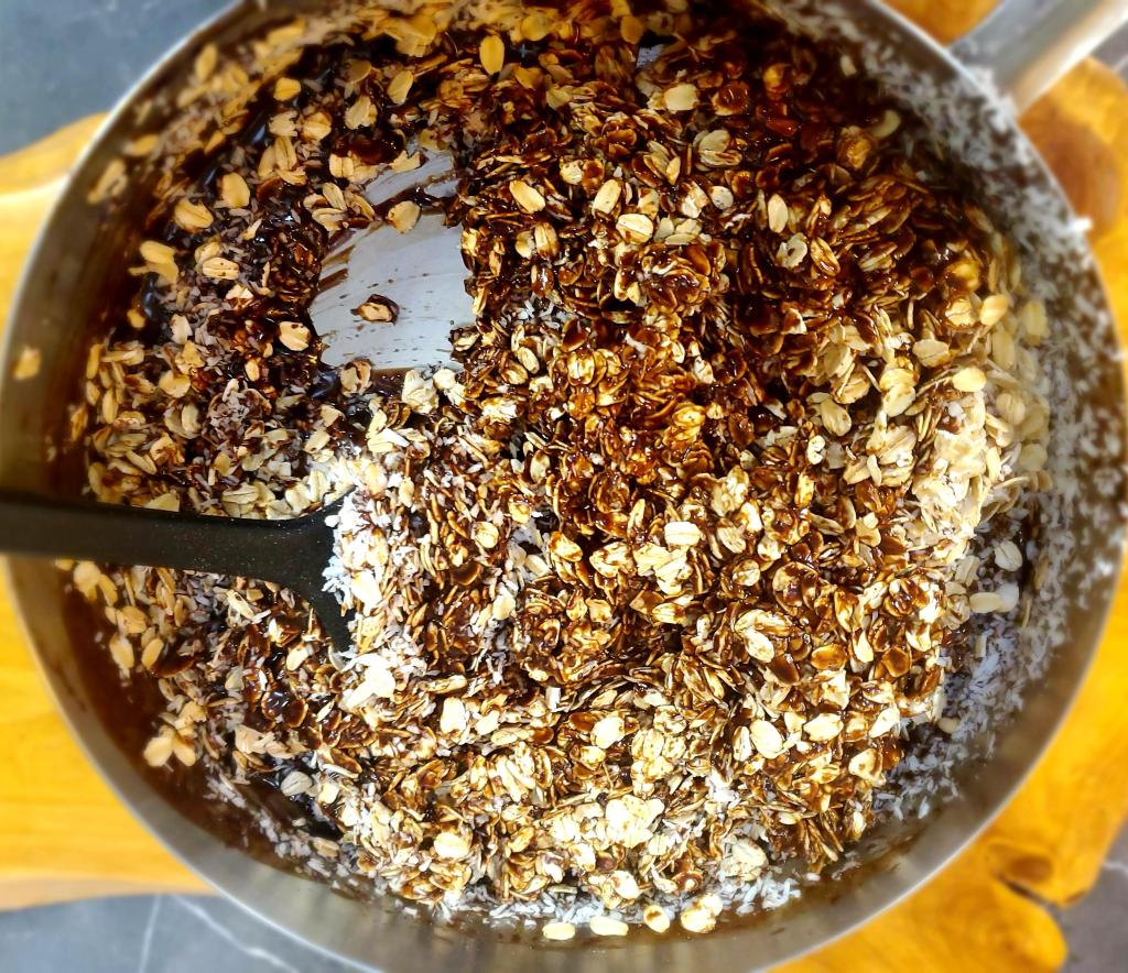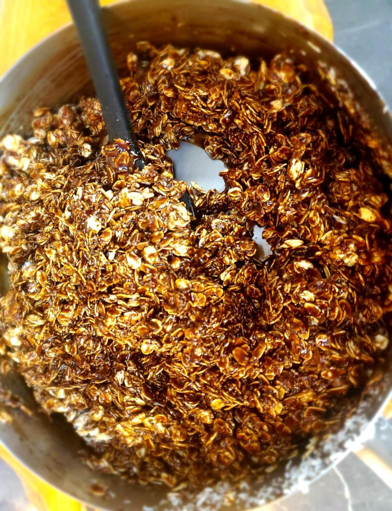 Macaroons or Haystacks, call ’em whatever you want, they still taste great! These are ridiculously easy to throw together and they make a great snack on the go. I recommend using rolled oats and not quick oats in this recipe. It adds to the chewy texture whereas quick oats tend to dry the mixture out. Adding cinnamon and the dandy blend or instant coffee powder will enrich the chocolatey flavor.