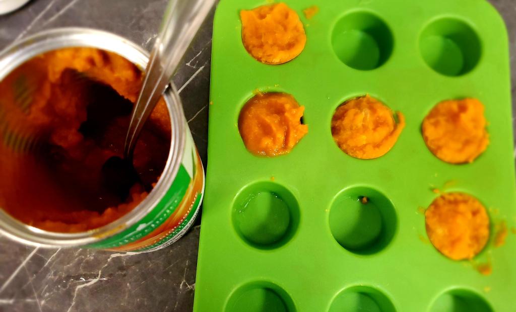 1 cup pumpkin puree, frozen in ice cube trays