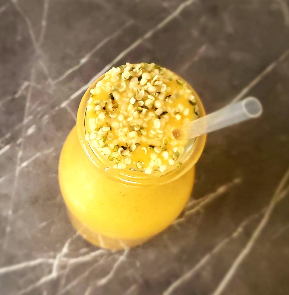Keeping with the pumpkin spiced theme, here is another easy recipe to add to your repertoire. Why the golden retriever you ask? Because a golden retriever and knit sweater is all any pumpkin spice concoction is missing. This delicious smoothie is packed with whole foods that make for a great pick me up any time of day. Roasted pumpkin or canned pumpkin in this recipe. The pumpkin puree doesn’t have to be frozen but it definitely makes for a better consistency. When using store bought plant milk, keep in mind the flavor and sweetness will vary. Adjust sweetness by using more or less dates depending on your taste. If you like a thicker smoothie definitely add ice, it adds a lovely milkshake like texture.