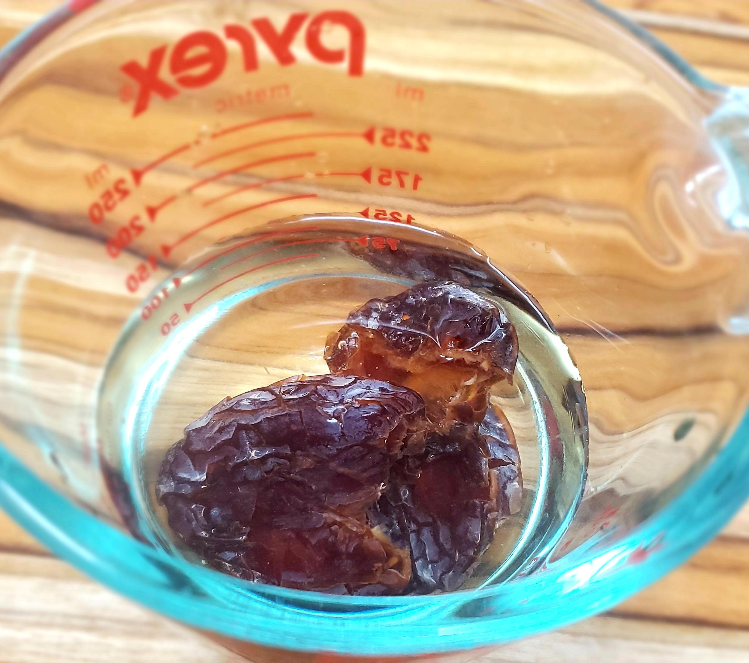 Soak dates in 1/2 cup of water and let soak for 5-10 minutes while you measure out the rest of your ingredients.