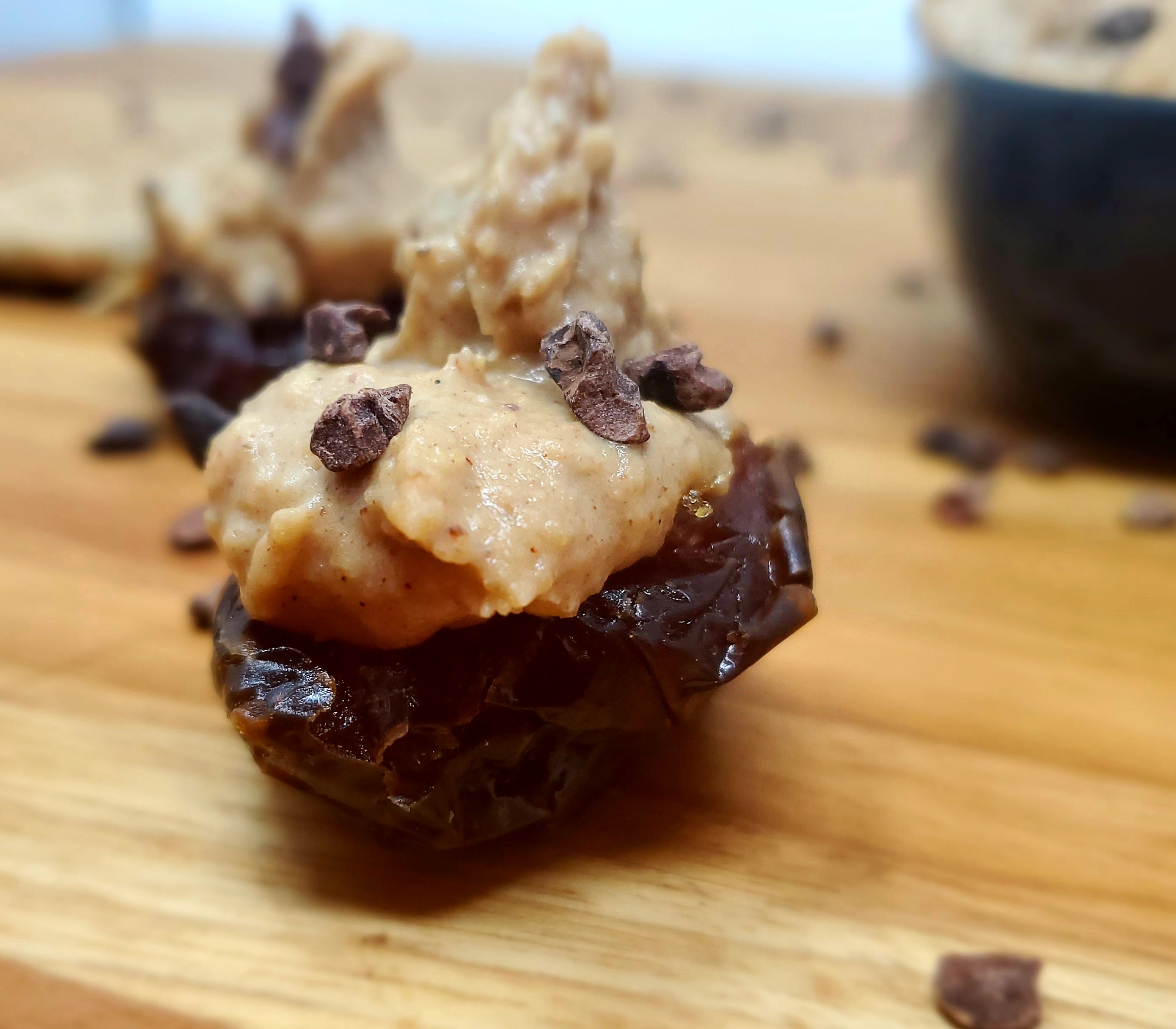 Scoop the cookie dough out of the bowl and serve as is with just a spoon. You can also serve this as a sweet dip for fruits and/or confections. This dip/spread goes great in a stuffed date with some additional mini chocolate chips or cacao nibs. Serve immediately or store in the fridge in an airtight container for up to 5 days.