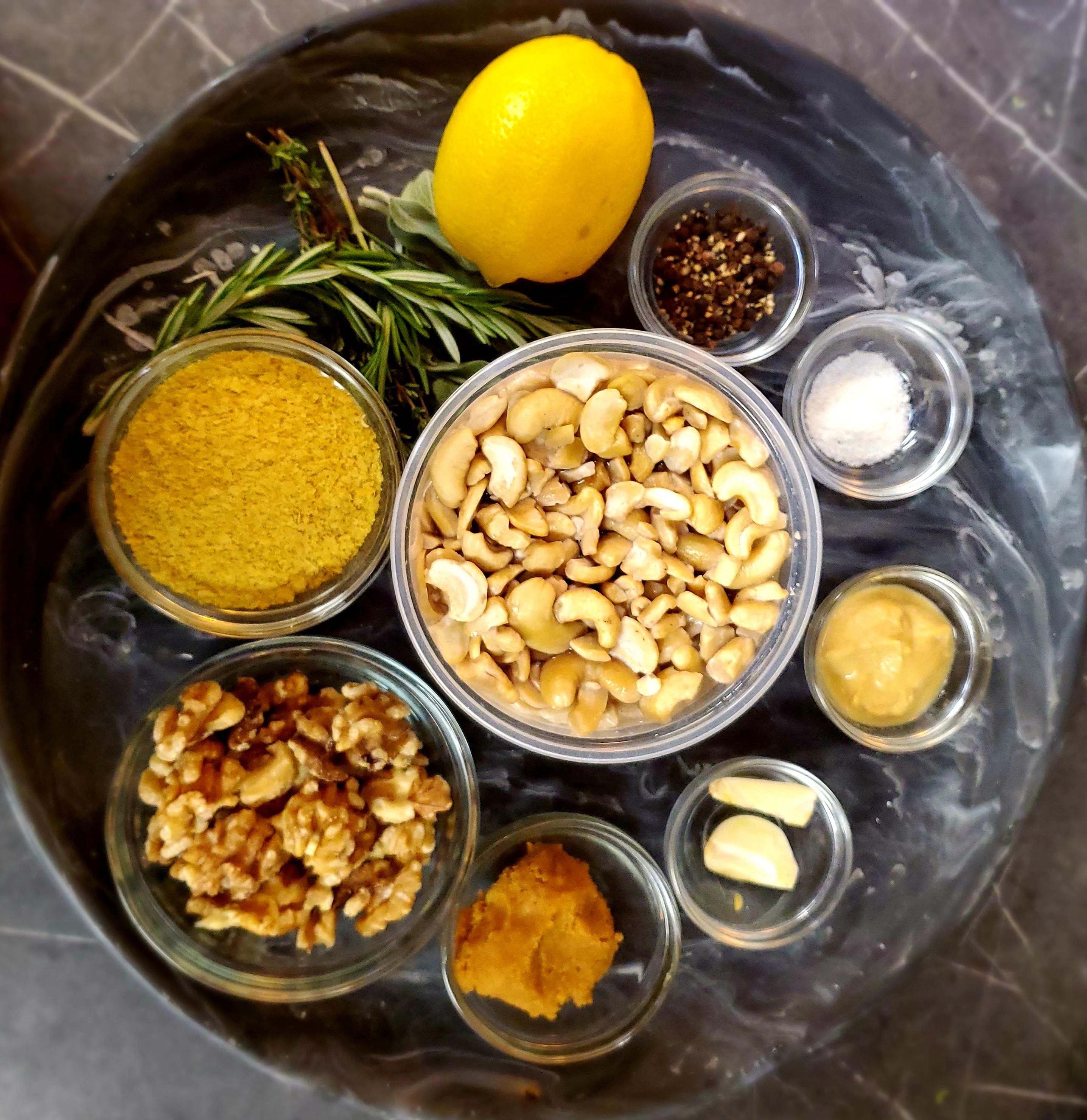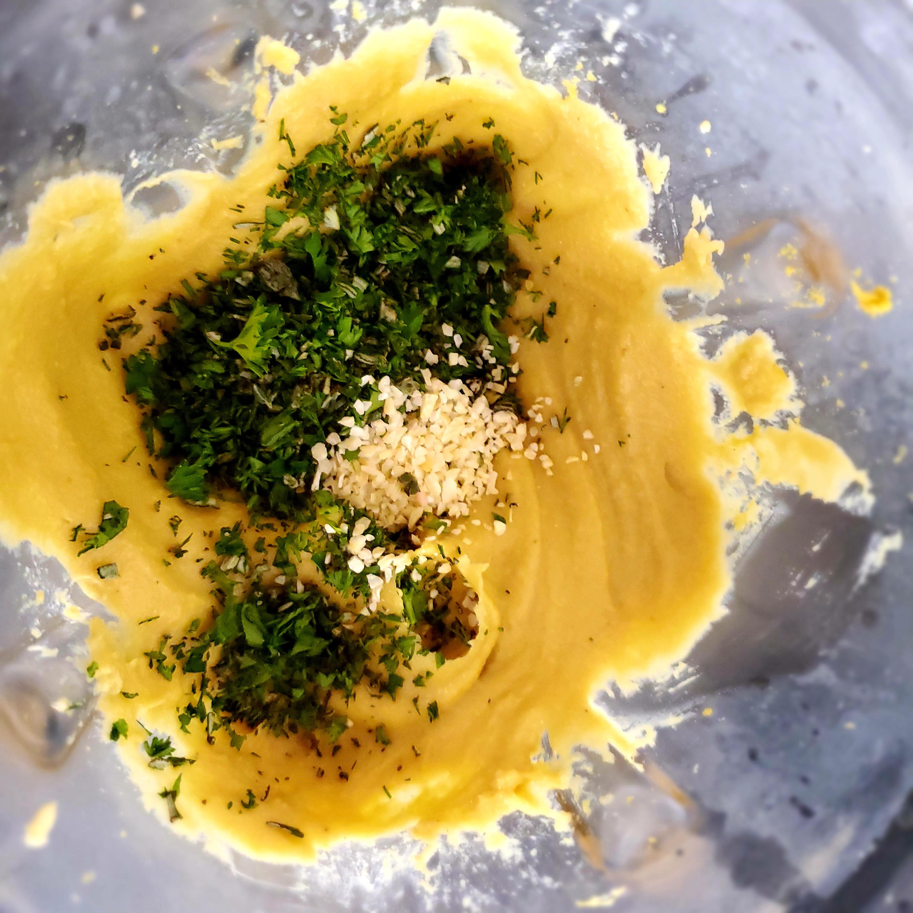 Using cashews as a base make it very versatile to add whatever flavors you like. I added a mixture of fresh dill, parsley, rosemary, and sage for the herb portion of this recipe. Feel free to play around with whatever fresh or dried herbs you have on hand.