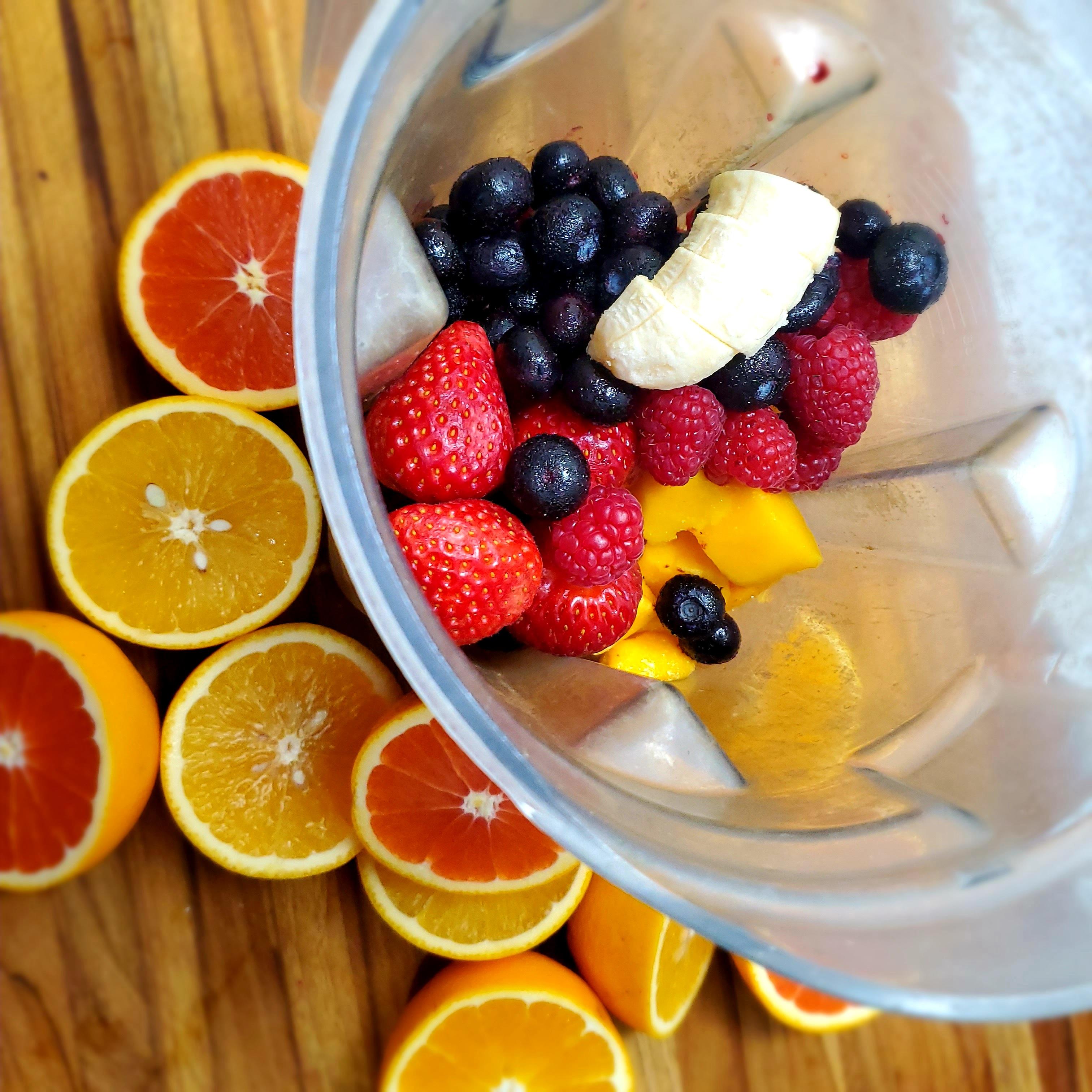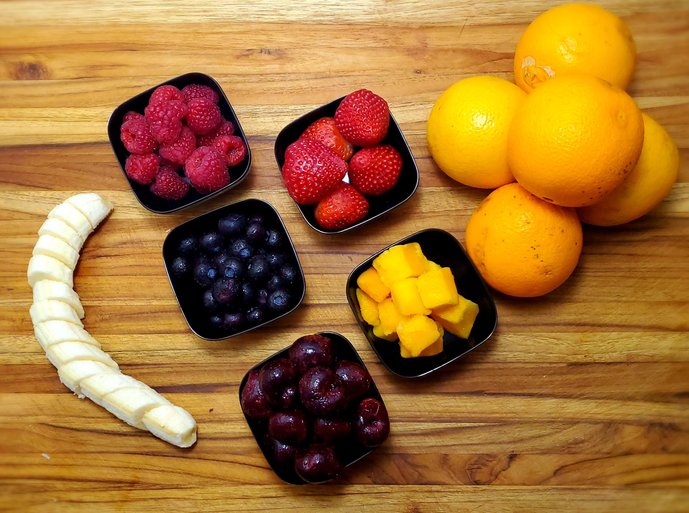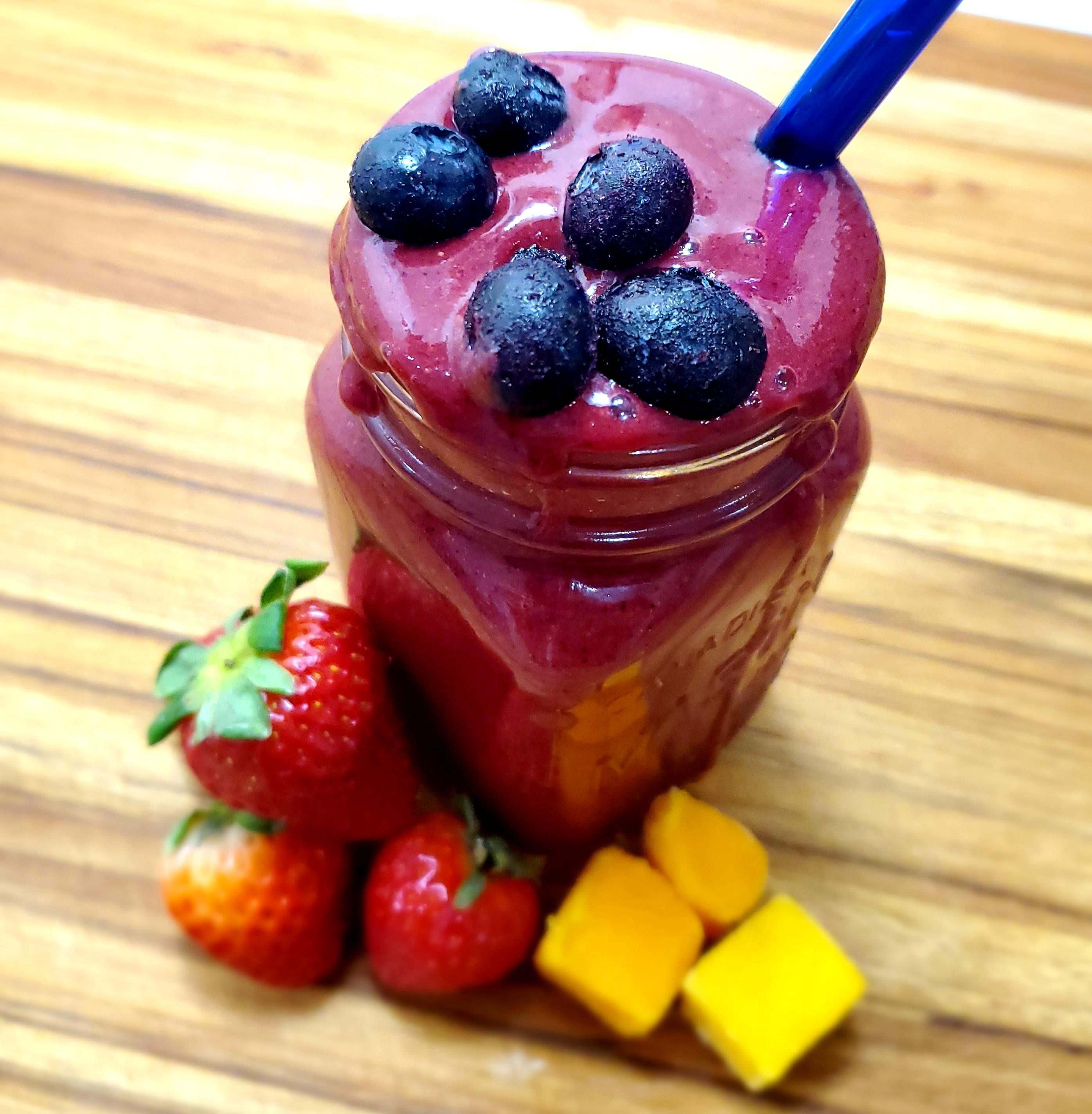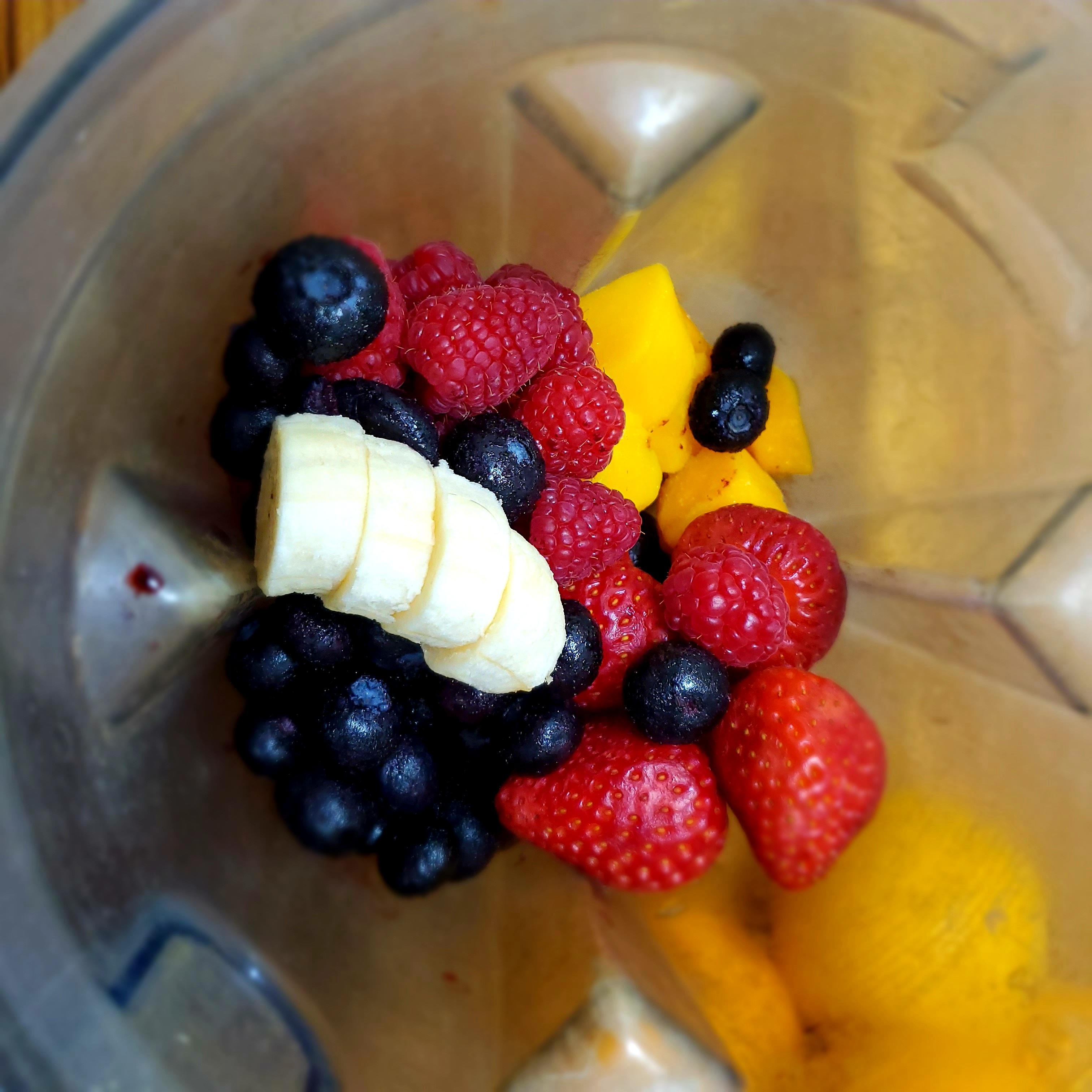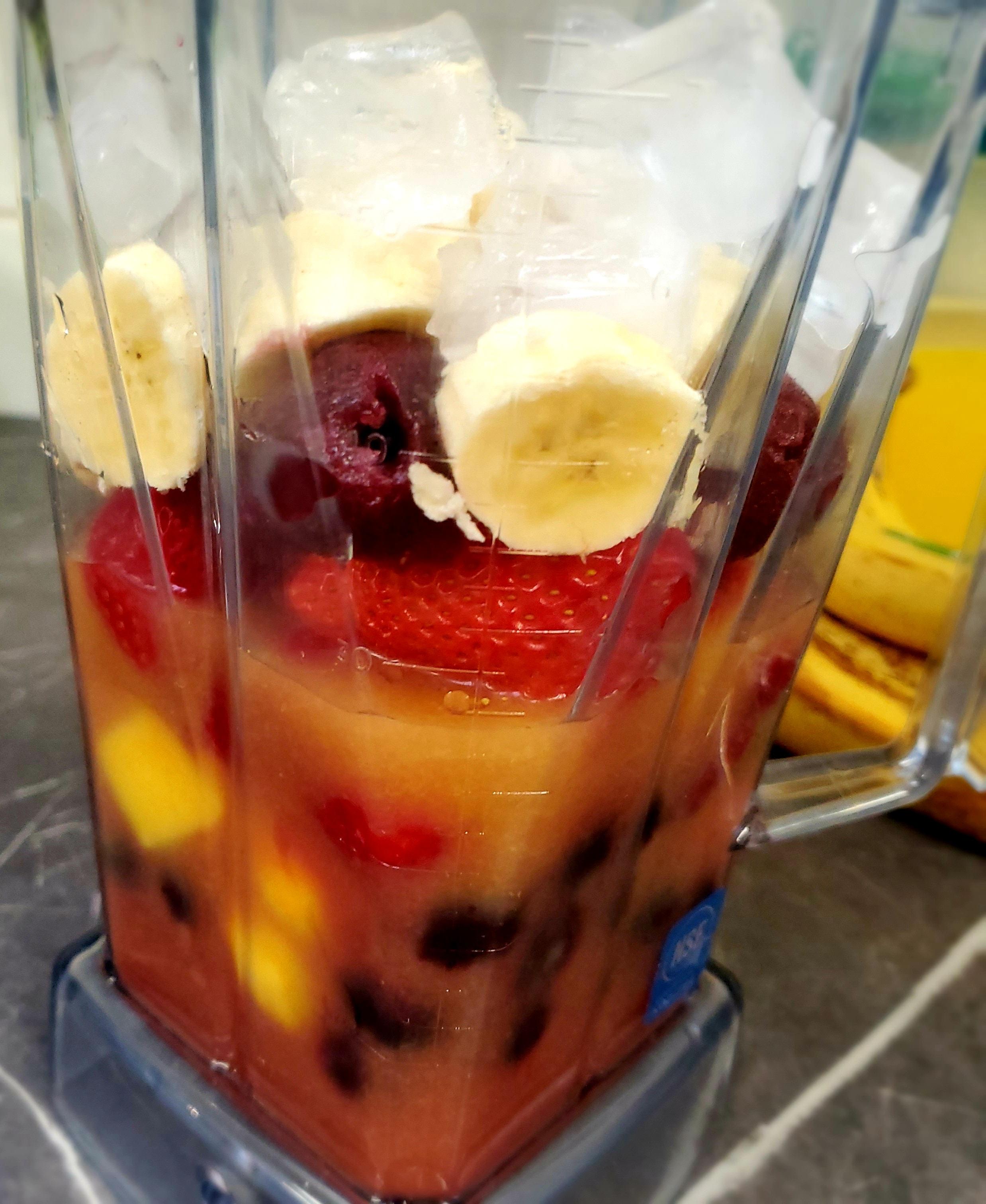 Instead of buying each individual berry, buy a frozen berry blend. They are affordable and taste great. Keep in mind, most berry blends don’t contain cherries. I would swap out the strawberries, raspberries, and blueberries for 1 1/2 cups of berry blend and in addition still add the mango and cherries. Feel free to play around with the fruit combinations.