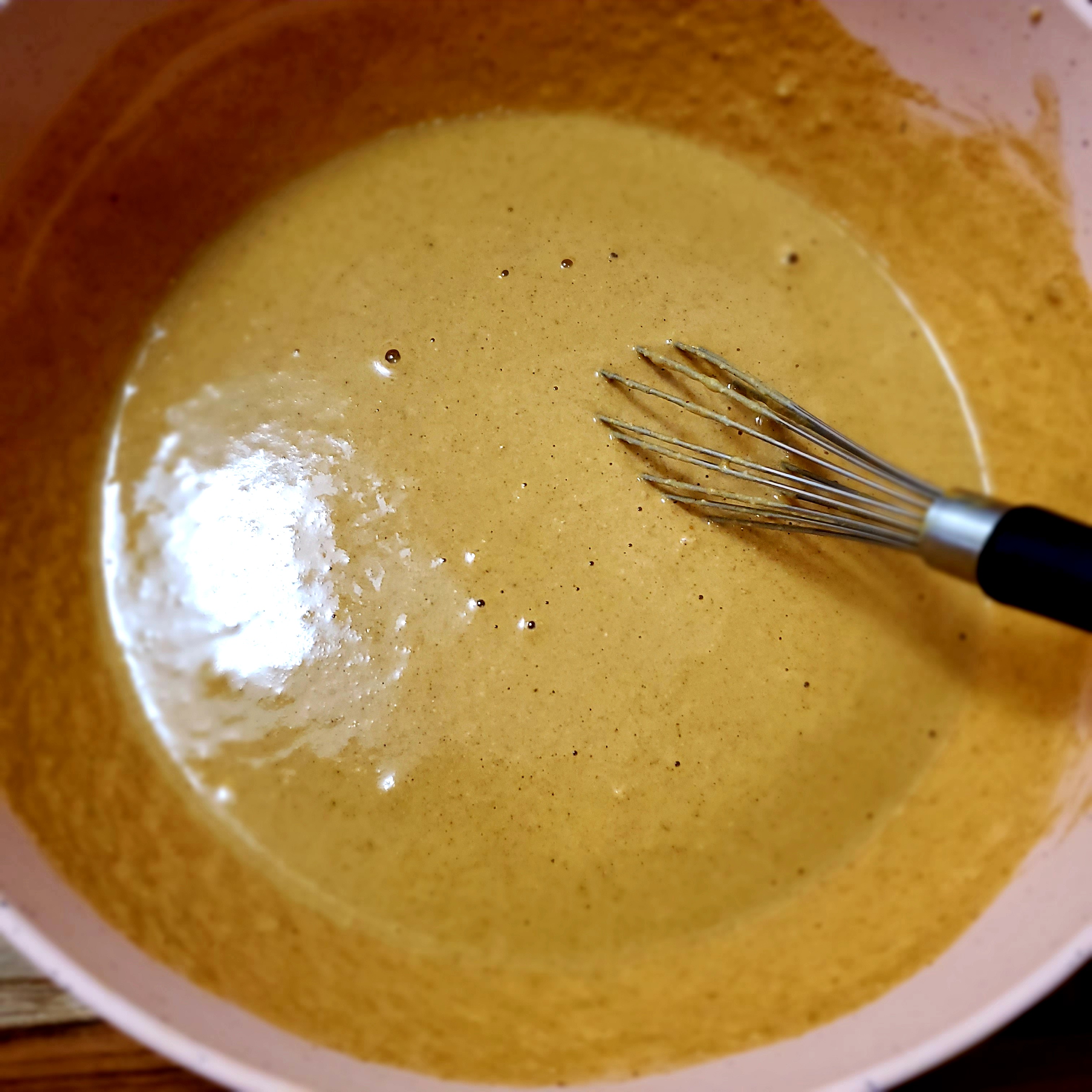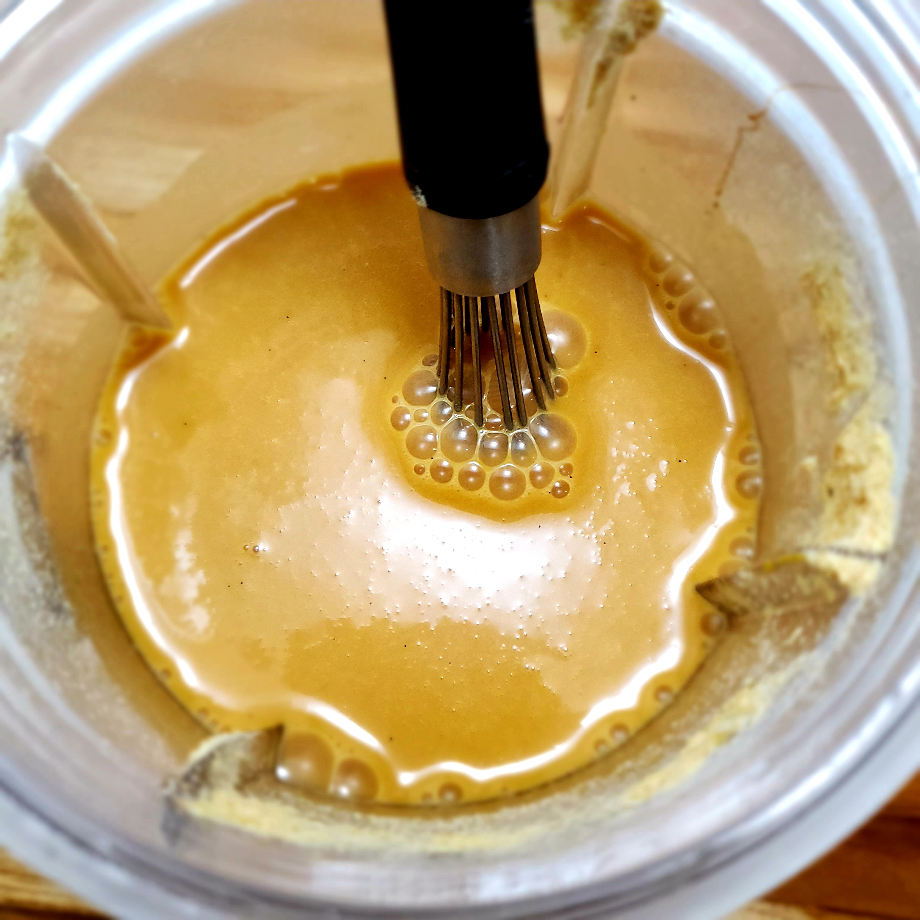 Pour your plant milk into a small bowl or blender and whisk in the vinegar. Allow this to sit for a minute or two. This works best with room temperature or warmed milk but milk straight of the fridge works just fine.