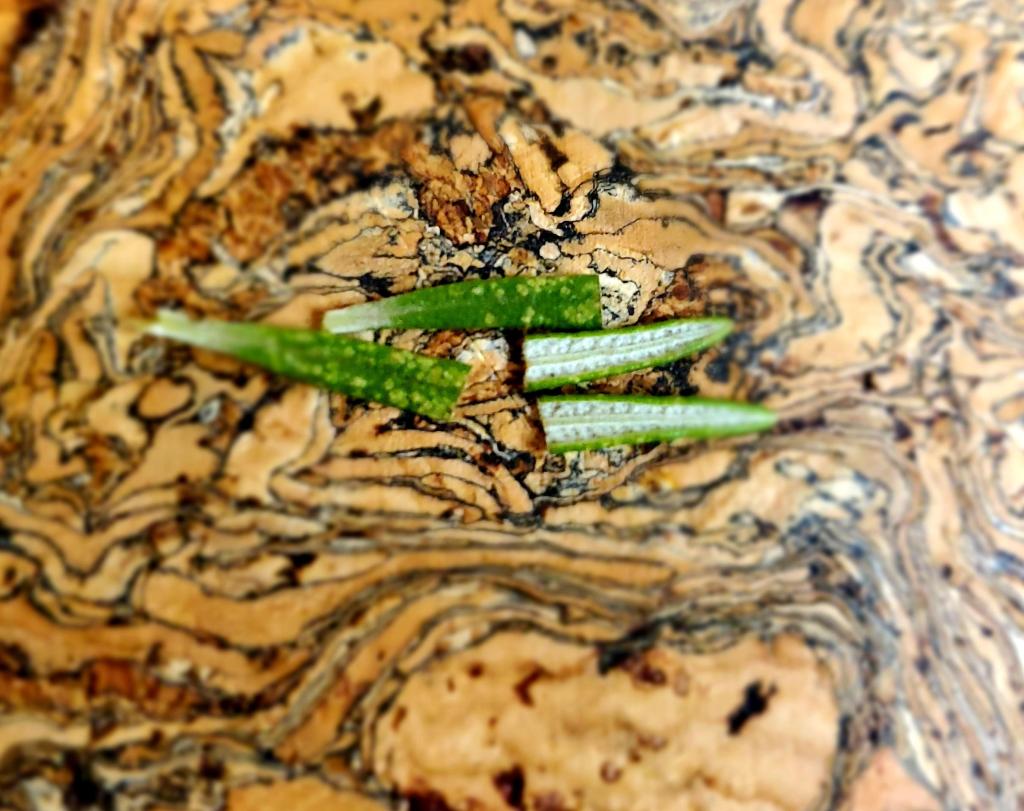 These are 2 sprigs of rosemary cut in half so the release their natural oils faster.